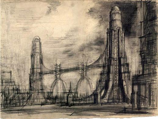 Architectural sketch by Hugh Ferriss, 1917